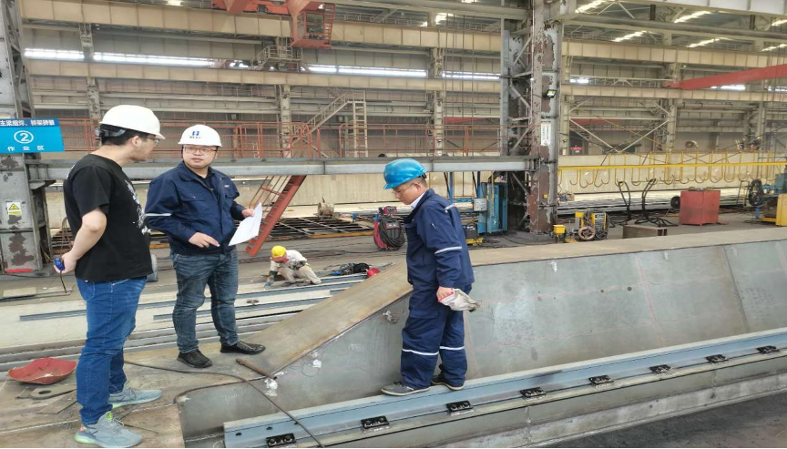 (在生產(chǎn)現(xiàn)場(chǎng)了解主梁工藝實(shí)施情況)