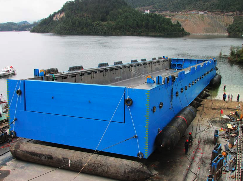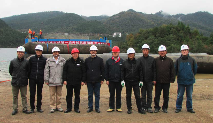 構(gòu)皮灘一級(jí)升船機(jī)承船廂構(gòu)皮灘通航工程是當(dāng)今世界通航水頭最高、單級(jí)提升高度最大、主提升設(shè)備規(guī)模最大的通航建筑物。為此公司董事長(zhǎng)徐學(xué)明親自掛帥,在公司領(lǐng)導(dǎo)和相關(guān)部門(mén)的大力支持下,克服了現(xiàn)場(chǎng)施工的種種困難,加班加點(diǎn)按原定計(jì)劃完成結(jié)構(gòu)制作;項(xiàng)目部根據(jù)現(xiàn)場(chǎng)有限的條件精心組織、科學(xué)決策,克服烏江流域內(nèi)沒(méi)有專用拖帶船、在沒(méi)有可供借鑒的案例情況下,編制了詳盡的氣囊下水方案、船廂拖帶方案、各工況下的安全評(píng)估報(bào)告和應(yīng)急預(yù)案, 從而保證了承船廂平穩(wěn)入水、安全進(jìn)入船廂室。