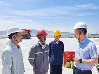 ▲公司黨委書記、執(zhí)行董事、總經(jīng)理黃生湘,公司常務副總經(jīng)理、總工程師習昊皓帶隊慰問項目一線職工
