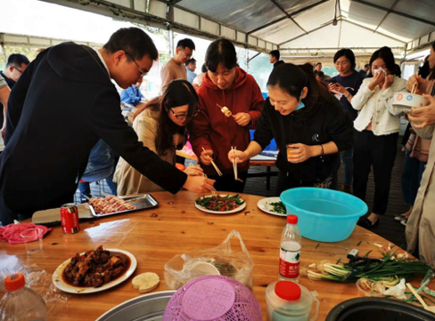 不一會兒,在團(tuán)隊協(xié)作下,燒烤和大鍋菜的香味陣陣撲鼻而來,你一塊我一塊,大家的午餐就這樣開始。大快朵頤之后,無論是新來的小伙伴還是老員工,已經(jīng)打成一片,同事間的情誼在歡聲笑語和縷縷炊煙中逐漸升華。