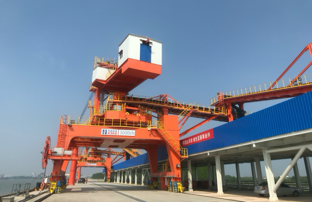 為適應(yīng)電廠、港口等用戶的需求,公司2003年為連云港新陸橋設(shè)計(jì)總包的3000/1000t/h、2005年為太倉(cāng)電廠設(shè)計(jì)總包的1500/600t/h裝卸一體機(jī),現(xiàn)已為用戶提供了可裝多種物料如煤、砂石料、水泥、石膏的裝船機(jī)、全封閉帶除塵環(huán)保裝船機(jī),生產(chǎn)的最大生產(chǎn)率裝船機(jī)為南京西壩的4500t/h裝船機(jī),后又為池州九神山提供了5臺(tái)3000t/h裝船機(jī)于2019年6月正式投入使用。