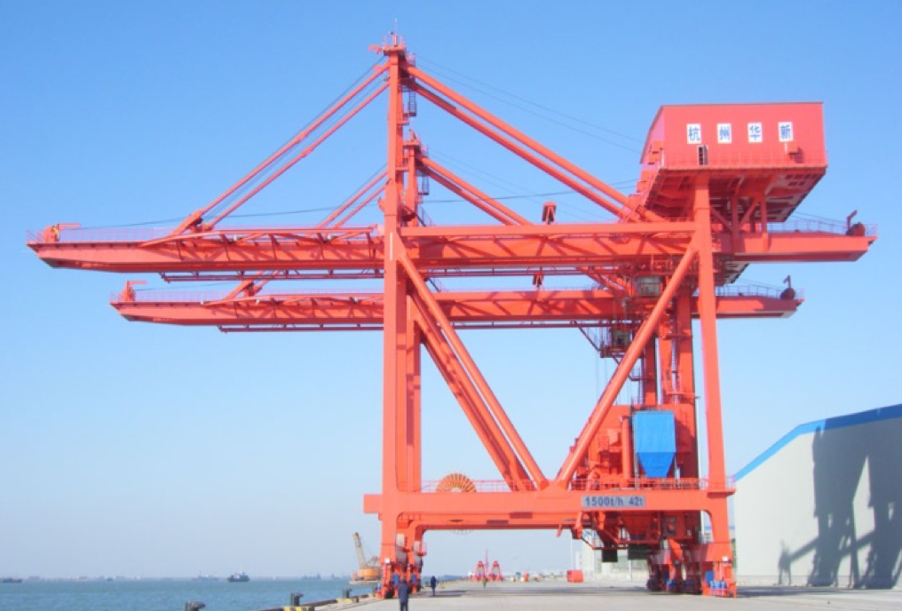 公司于1990年成功研發(fā)公司首臺臺四卷筒牽引式卸船機試驗機,在上海吳涇熱電廠投入使用,1993年1臺600t/h機房下置的四卷筒牽引式卸船機在華能威海電廠投入使用,至今已運行近30年,設(shè)備情況良好。經(jīng)過不斷地發(fā)展,不斷地積累經(jīng)驗,不斷地研發(fā)創(chuàng)新,華新機電生產(chǎn)制造的卸船機技術(shù)在不斷地升級,產(chǎn)品系列從200t/h~2400 t/h,目前生產(chǎn)制造過的生產(chǎn)率最大卸船機為馬來西來亞TJB2400t/h項目,具備設(shè)計制造2500~3500t/h卸船機的能力。產(chǎn)品廣泛應(yīng)用于電力、冶金、建材、港口、散貨碼頭等行業(yè),在“一帶一路”的偉大創(chuàng)舉下,產(chǎn)品陸續(xù)出口印尼、馬來、菲律賓、新加坡、越南等東南亞國家以及西亞、中東、南美、非洲等地區(qū),產(chǎn)品遍及國內(nèi)外。
