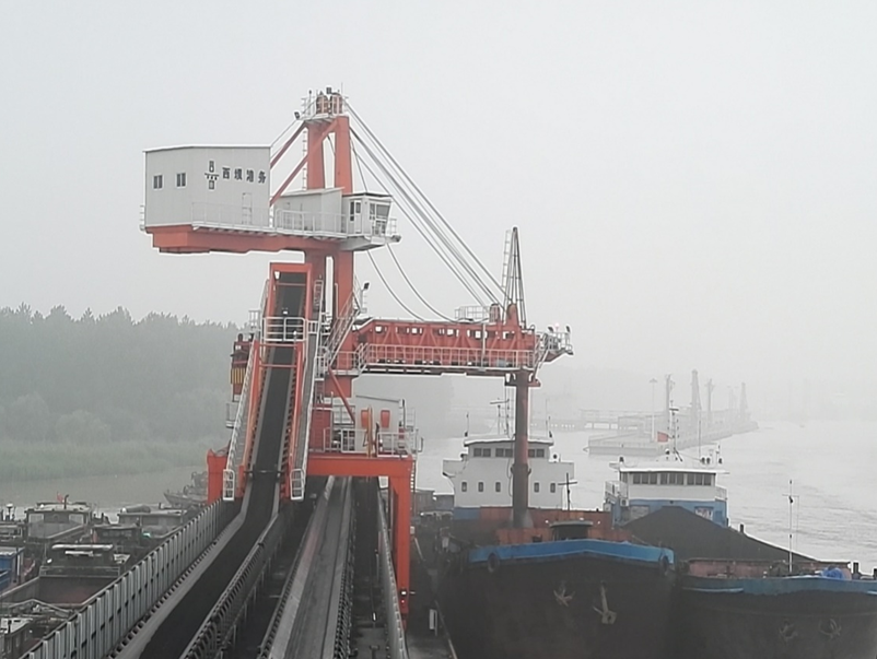 為適應(yīng)電廠、港口等用戶的需求,公司2003年為連云港新陸橋設(shè)計(jì)總包的3000/1000t/h、2005年為太倉(cāng)電廠設(shè)計(jì)總包的1500/600t/h裝卸一體機(jī),現(xiàn)已為用戶提供了可裝多種物料如煤、砂石料、水泥、石膏的裝船機(jī)、全封閉帶除塵環(huán)保裝船機(jī),生產(chǎn)的最大生產(chǎn)率裝船機(jī)為南京西壩的4500t/h裝船機(jī),后又為池州九神山提供了5臺(tái)3000t/h裝船機(jī)于2019年6月正式投入使用。