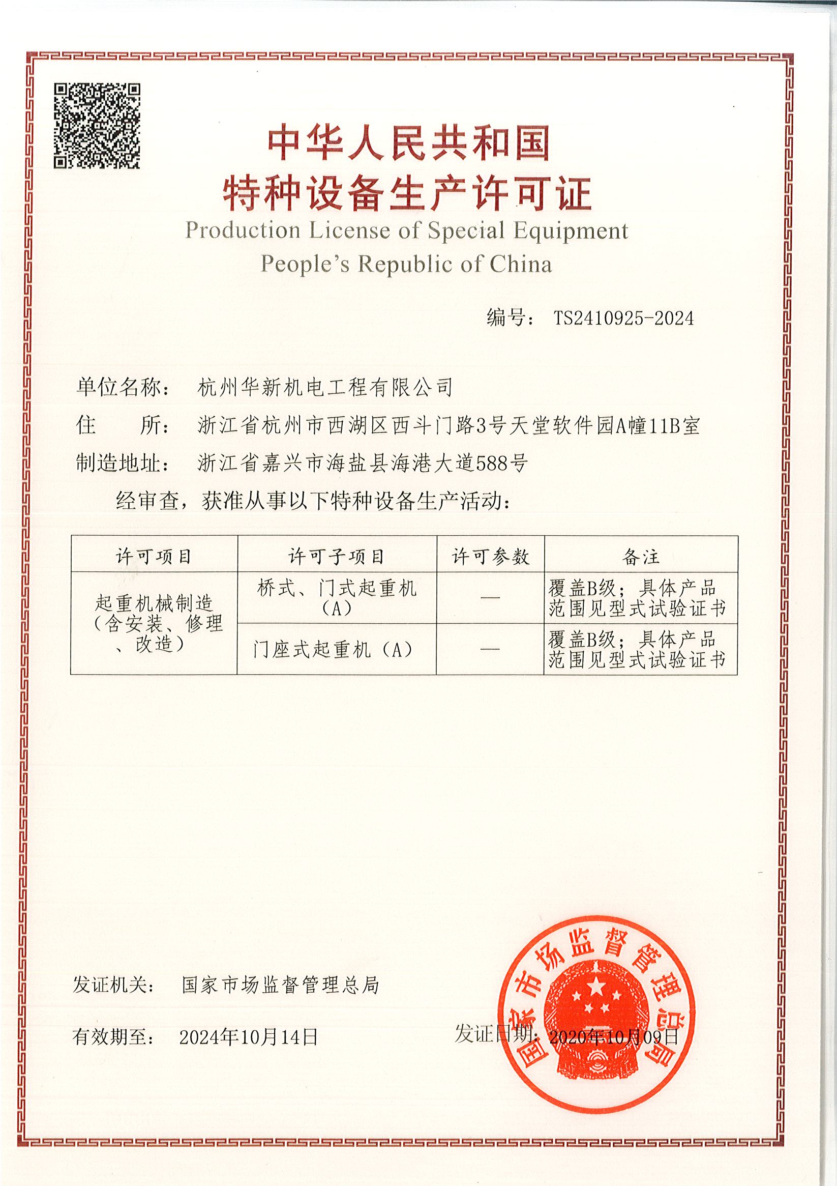 特種設(shè)備生產(chǎn)許可證